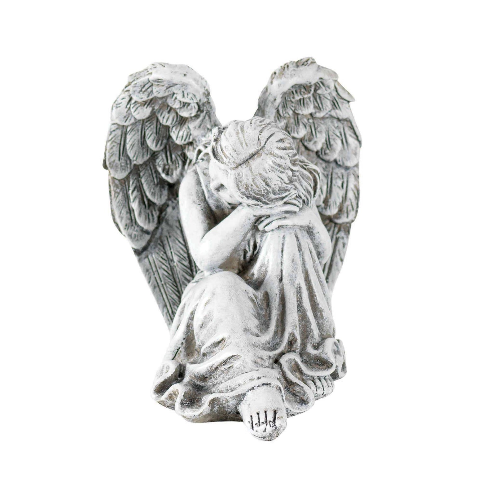 This exquisitely detailed garden angel figurine provides a peaceful and comforting presence wherever it is placed. Makes a thoughtful gift for bereavement, or any occasion. Made of resin with stone color finish. Size is about 4" tall X 5 1/4" long X 3 1/4" wide.