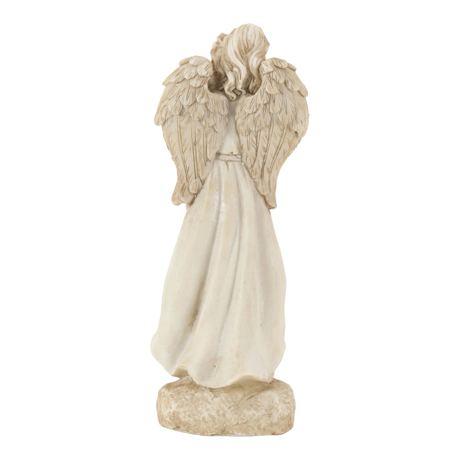 This sweet angel is a comforting presence in the home after the loss of a loved one. Has a garden stone appearance with beautifully detailed wings and sculpted floral bouquet. Robe is engraved with "Those we love don't go away, they walk beside us everyday, unseen, unheard but always near, still loved, still missed, and very dear." Height is 8"; made of resin.